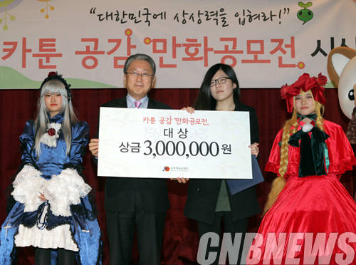 ▲8일 문화체육관광부 대강당에서 열린 '2014 카툰 공감 만화공모전' 시상식에서 고지혜씨가 대상인 문화체육관광부장관상을 수상하고 있다.(사진=문화체육관광부)