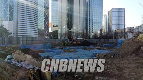 ▲서울 종로구 공평동 재개발현장에서 신축 건물을 올리기 위한 사전 작업으로 매장문화재 발굴조사가 진행되고 있다.(사진=왕진오 기자)