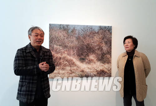 ▲9일 서울 종로구 삼청로 국제갤러리 1관에서 '그림 풍경'전 설명회가 열렸다. 이날 전시 주인공인 이화여대 이광호(47) 교수의 작품 설명 현장에 국제갤러리 이현숙 회장(우측)이 함께하고 있다.(사진=왕진오 기자)
