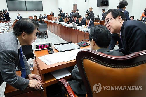 ▲국회 국민안전혁신 특별위원회 전병헌 위원장(가운데), 김태원 여당 간사(오른쪽), 노웅래 야당 간사가 9일 국회에서 열린 전체회의에서 논의하고 있다. (사진=연합뉴스)