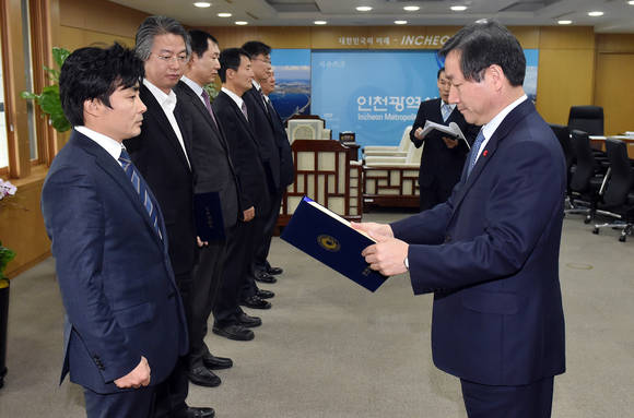 인천시는 10일 ‘재개발 등 정비사업 행정지원 자문단’ 위원에게 위촉장을 전달했다.