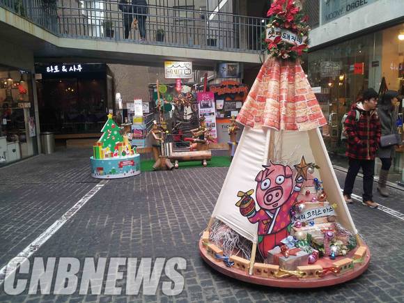 크리스마스를 앞두고 크리스마스 관련 전시물들이 길가에 전시돼 있어 눈길을 끈다.