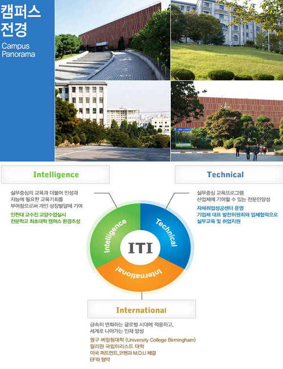 인천대학교 제물포 캠퍼스에 위치한 인천전문학교는 이러한 전문학교의 특성을 더욱 최대화 시켜 전공 강의는 물론 졸업 전 전임 교수님의 추천서를 통해 전공을 살려서 수월하게 취업을 할 수 있다는 것이 특징이다.