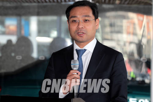 이날 설명회에 함께한 김민수 현대자동차 브랜드전략실 이사가 현대모터스튜디오에서 미디어아트 전시를 하게된 배경을 설명하고 있다.
