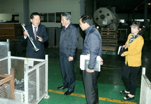 ▲장석현 남동구청장이, 기업을 방문해 기업들의 애로 사항을 듣고 있다.(사진제공=남동구)
