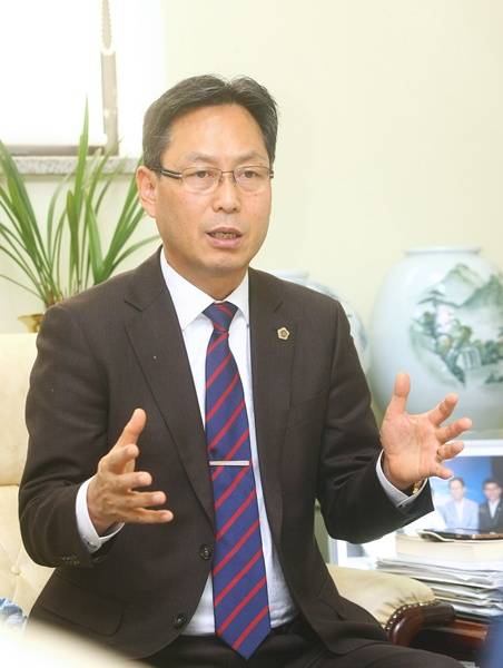 ▲이승철 경기도의회 새누리당 대표 의원이 CNB NEWS와의 인터뷰에서 도민을 위해 원칙과 소신을 가지고 도민의 행복한 삶의 질 향상을 위해 새누리당 의원들 모두 최선을 다하겠다는 말을 하고 있다.