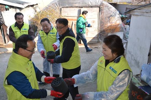 농협중앙회 경기지역본부 조재록 본부장과 NH농협 경기노조 송명규 지역위원장은 12일 경기관내 함께나눔 농촌사랑봉사단 40여명과 함께 용인시 남사면·이동면 일대에서 함께나눔 사랑의 연탄나눔 봉사활동을 펼쳤다.