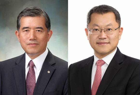 ▲PMI TF 팀장을 맡은 심경섭 ㈜한화 대표이사(왼쪽)와 김희철 한화큐셀 대표이사(오른쪽)(사진 제공: 한화그룹)