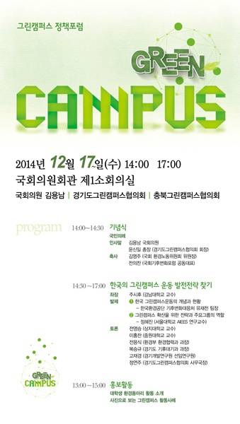 환경부에서 지정하는 ‘그린캠퍼스’의 정의와 성과 및 2010년 저탄소녹색성장기본법 제정 이후 친환경 운동에서 대학의 역할에 대해 설명할 예정이다. 현재 진행되고 있는 각 대학별 그린캠퍼스운동의 우수사례도 알린다.
