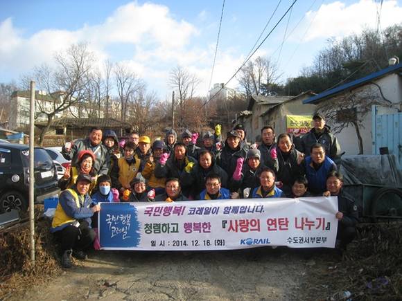코레일 수도권서부본부(본부장 나민찬) 구로사랑나눔봉사회는 지난 16일 구로구 수궁동에 거주하는 소외계층 8가구를 선정하여 연탄 1500장을 직접 전달했다.