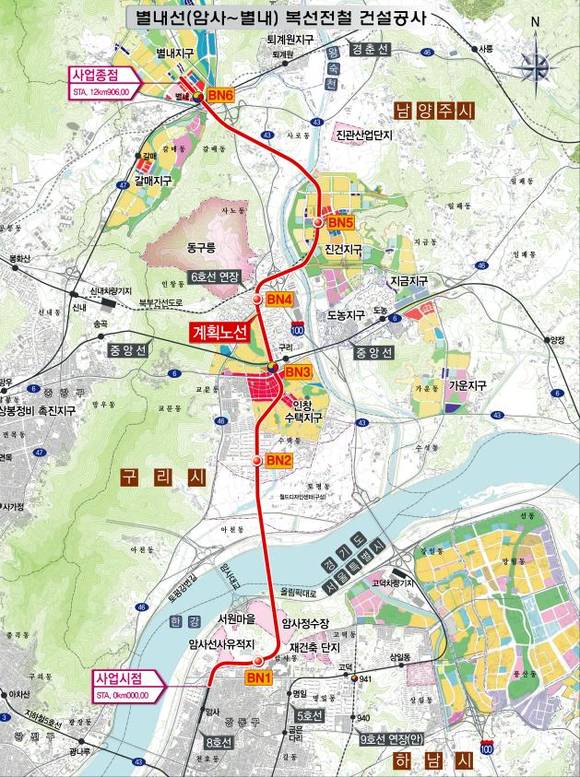 별내선은 8호선 암사역에서 구리시 중앙선 구리역과 농수산물 도매시장, 다산신도시를 경유해 남양주 경춘선 별내역까지 연결하는 총 12.9km 구간의 복선 전철이다. 1조 2806억원의 사업비, 총 6개 정거장이 설치될 계획이다.
