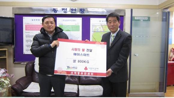 에이스마트는 이웃사랑과 나눔 실천을 위해 해마다 선학동과 문학동 주민을 위해 쌀을 기탁해 오고 있으며, 올해는 경기 한파에도 불구하고 다른 해 보다 더 많은 양을 기탁했다.