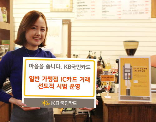 시범 운영은 내년 1월 말까지 KB국민카드 본사 및 25개 영업점 인근 일반 가맹점 300여 개를 대상으로 진행된다. 기존 카드 뒷면의 마그네틱선을 긁는 방식 대신 카드 겉면의 네모난 금색 전자 칩을 IC 단말기에 삽입하는 형태의 거래 방식이다.