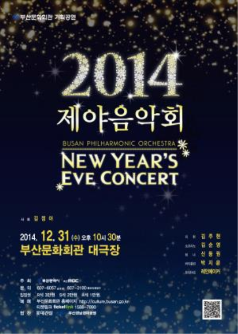 (CNB=최원석 기자) 부산문화회관(관장 박성택)은 가는 해의 아쉬움을 달래고 오는 해를 뜻 깊게 맞이하기 위해 ‘2014 제야음악회’를 성대하게 연다고 19일 밝혔다.