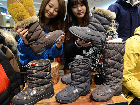 최근 갈수록 겨울 추위가 매서운 가운데, 롯데백화점 부산본점 5층 노스페이스영 매장에서는 패딩 소재로 만들어진 부츠를 선보여 여성고객들이 살펴보고 있다. (사진제공=롯데백화점 부산본점)