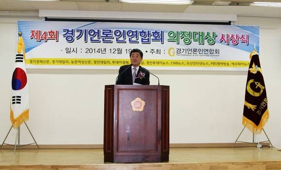 축사에 나선 경기도의회 새누리당 당대표는 "벌서 4회를 맞이한 경언련의 의정대상 수상식을 축하하며 수상자들은 앞으로도 지역 발전을 앞당기는 역할과 기여를 통해 끊임없이 노력해 달라"고 당부했다.