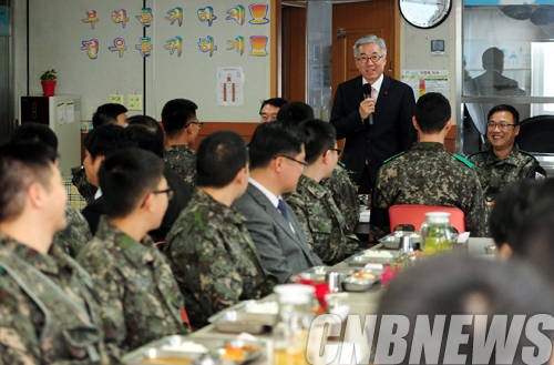 ▲24일 김종덕 문화체육관광부 장관이 이명교 문체부 노조위원장 등 간부들과 연말연시를 맞아 국토방위에 헌신하고 있는 국군 장병들의 노고를 위로하고자 강원도 철원에 소재한 승리부대를 방문했다. 이날 김종덕 문화체육관광부 장관이 승리부대 장병들과의 오찬에 앞서 격려사를 하고 있다. (사진=문화체육관광부)