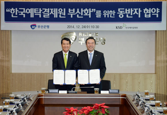 BS금융그룹 부산은행(회장 겸 은행장 성세환)은 한국예탁결제원과 24일 오전 부산은행 본점 20층 회의실에서 관계자 30여명이 함께 한 자리에서 지역경제 활성화와 지역금융 발전을 위한 ‘한국예탁결제원 부산화’에 공동 협력하기로 협약을 체결하고, 본격적인 부산현지화의 면모를 발 빠르게 다져나가기로 했다고 밝혔다.
