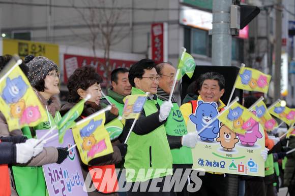 (CNB=최성락 기자) 2018스마일 캠페인 범시민 실천 협의회는 지난 24일 오전 8시께 출근하는 시민과 아침인사를 나누며 올림픽 시민운동 '2018스마일 캠페인'을 전개했다.