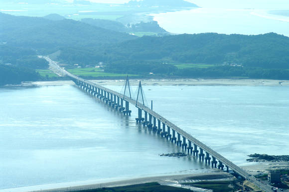 ▲특수상황지역 개발사업 대통령상을 수상한 인천시 강화군 교동연륙교(2014년 7월 1일 개통) 전경.(사진=인천시)