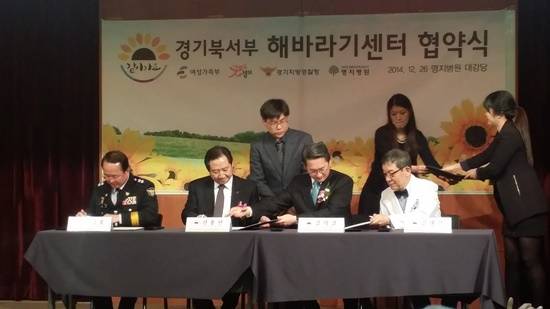 경기북서부 지역의 여성과 아동폭력 피해자를 돕기 위한 통합지원센터인 경기북서부 해바라기센터가 26일 명지병원 대강당에서 개소식을 개최하고 4개 기관이 경기북서부 해바라기센터 협약식을 진행했다.