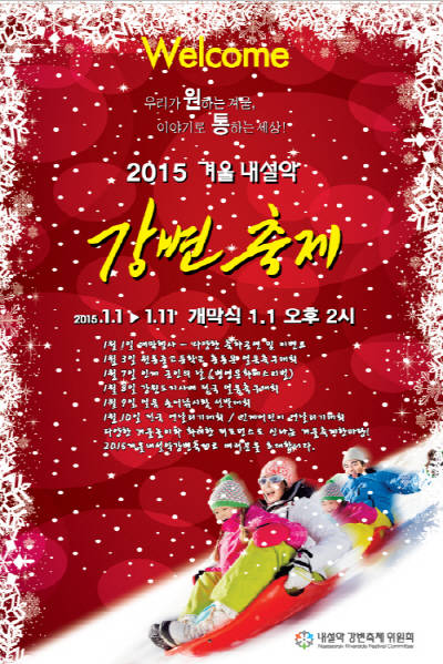 한편 축제위원회 관계자는 "올해 심한 가뭄으로 인제의 상경기가 위축돼 많은 어려움을 겪고 있어 2015 겨울 내설악 강변축제를 통해 조금이나마 지역경기 활성화에 기여했으면 좋겠다. "며 "많은 가족단위 관광객들이 찾아 겨울놀이를 즐기고 을미년 한해 운수 대통 하시길 바란다. "고 말했다.