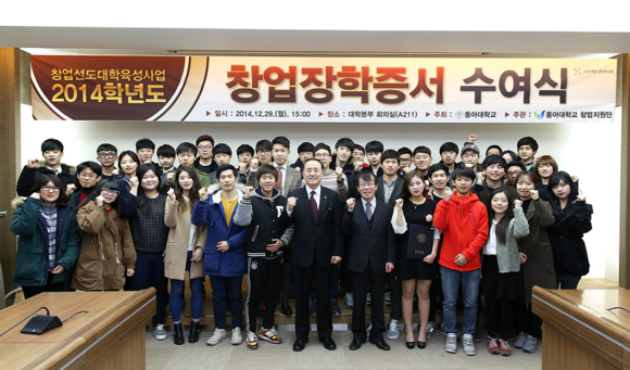 (CNB=최원석 기자) 동아대학교(총장 권오창) 창업지원단이 29일 오후 3시 승학캠퍼스 본부회의실(A211호)에서 ‘2014학년도 2학기 DA-Superior 장학증서 수여식’을 개최했다.
