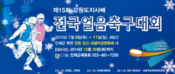 (CNB=최성락 기자) 인제군은 오는 4일까지 제15회 강원도지사배 전국얼음축구대회의 참가팀 신청을 추가로 접수한다.
