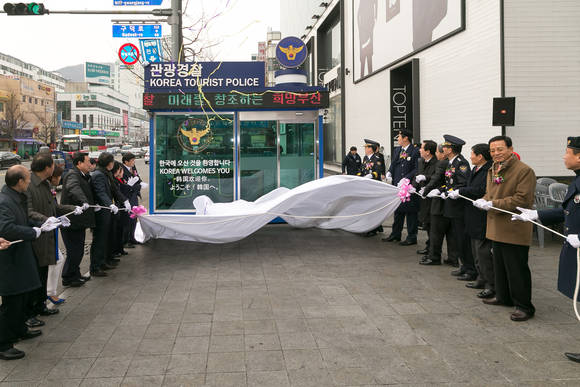 ▲부산관광경찰대는 30일 남포동 BIFF광장 입구에서 관광경찰대 ‘남포센터’ 개소식을 진행했다. (사진제공=부산경찰)