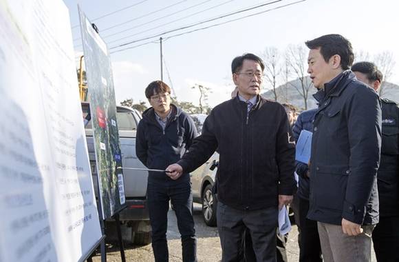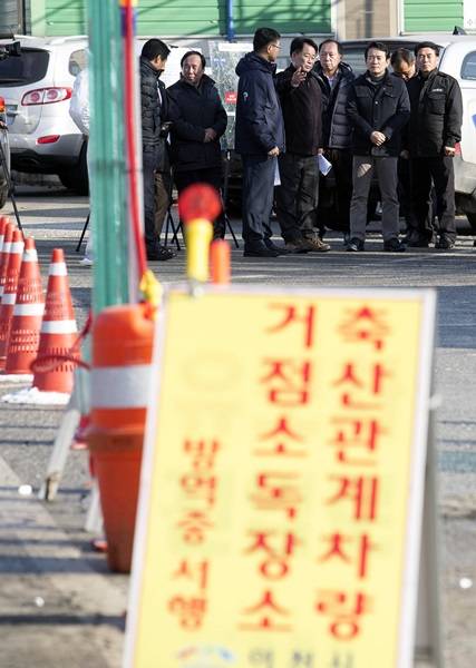 남경필 경기도지사가 지난 31일 오후 이천 장호원읍 구제역 발생지역의 방역 통제초소를 방문하여 방역통제초소 관계자들을 격려하고 이천시 방역추진사항을 보고받고 있다.