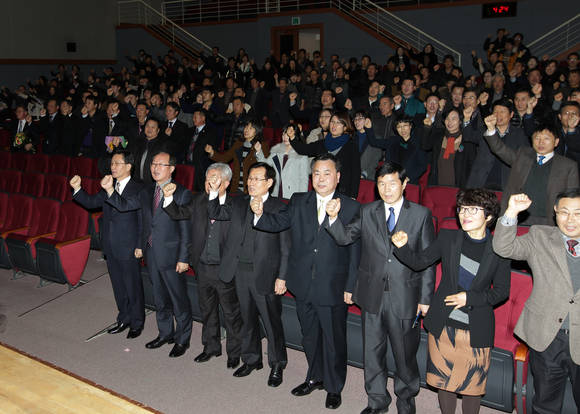 (CNB=최성락 기자) 2014년도 강릉시청 종무식이 지난 31일 오후 3시께 시청 대강당에서 최명희 시장과 국소장 및 직원, 시민 등 500여 명이 참석한 가운데 열렸다