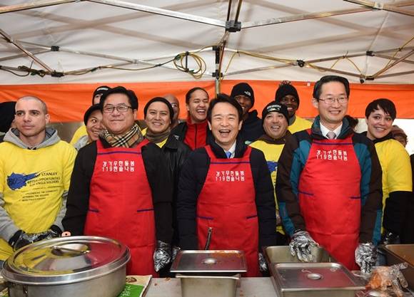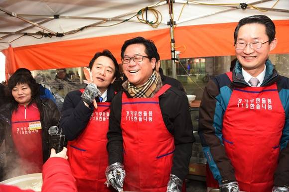 지난 2일 오전 남경필 경기도지사는 의정부 가능역에서 김희겸 행정2부지사, 이기우 사회통합부지사와 함께 무한돌봄 119한솥 나눔 급식봉사 활동에 참여했다.