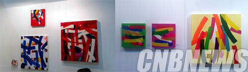 ▲'서울아트쇼2014 에 걸린 임○○작가(사진 좌측)의 작품과 하태임 작가의 작품'.(사진=왕진오 기자)