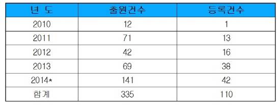특허청에 전자담배와 관련된 디자인등록 건수도 2010년~2012년까지 3년간 총 30건이 등록됐으나 2013년부터 2014년 11월까지 각각 38건, 42건으로 늘었다.