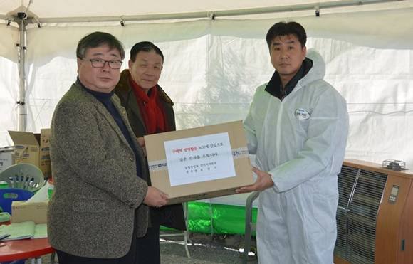 농협중앙회 경기지역본부(본부장 오경석)는 지난 10일 경기도 관내 3개시 8개 농가에서 구제역이 발생한 가운데 발생지역(이천,용인,안성)과 인접지역(여주,평택,화성) 등 6개시 22개 방역초소를 방문해 방역활동에 전념하고 있는 근무자들을 격려하고 위문품(즉석떡국) 100박스(2백만원 상당)를 전달했다.