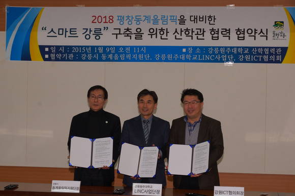 시에 따르면 강릉원주대학교 LINC사업단, 강원ICT협의회와 협약을 체결하고 강릉지역 문화·관광 산업 육성 및 스마일 캠페인 활성화를 목적으로 지역 관광문화재를 다국어 음성 해설 서비스로 제공하는 '스마트 강릉' 서비스를 구축하기 위해 지난 9일 11시께 강릉원주대학교 산학협력관에서 협약식을 체결했다고 밝혔다.