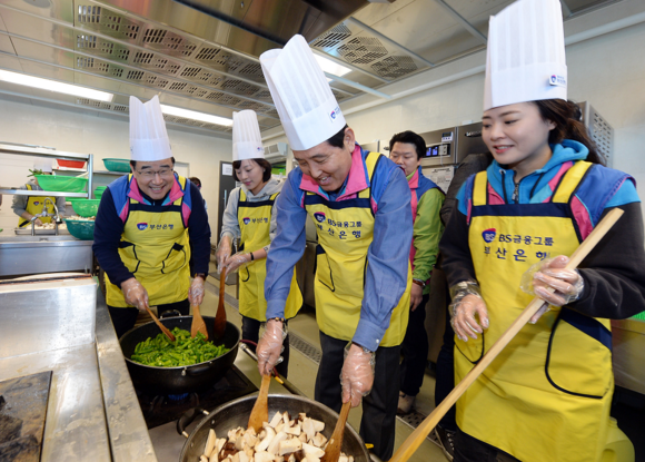 성세환 회장, 김정훈 국회의원을 비롯한 BS금융그룹 임직원들은 이날 오전 신축본점 직원식당에서 1주일 이상 먹을 수 있는 분량의 5가지 반찬(연근 소고기 장조림, 버섯조림, 깻잎, 콩잎 장아찌, 건새우 꽈리고추 볶음)을 만들어 인근 문현2동 지역 독거노인 200여 가구를 방문해 전달했다.