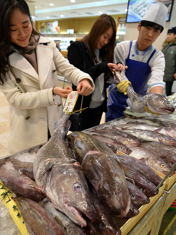 롯데백화점 부산본점 지하 1층 식품관 수산코너에서는 가덕도 인근에서 잡힌 ‘가덕 대구’를 선보이고 있다. 대구 중에도 귀한 대접을 받는 가덕 대구는 담백한 육질에 국도 시원하고 맑아 인기를 얻고 있다. (사진제공=롯데백화점 부산본점)