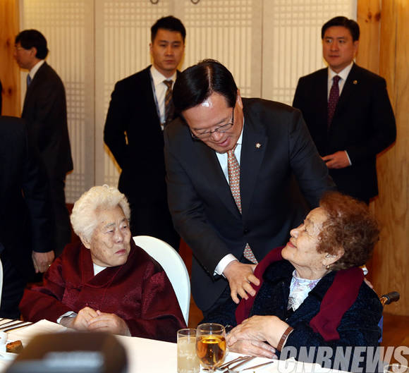 정의화 국회의장은 1월 13일 일본군 위안부 피해자 할머니들을 국회 사랑재로 초청하여 오찬을 가졌다.