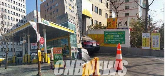 ▲한때 전국 최고가 주유소로 알려졌던 국회 정문 앞 경일주유소는 지난 연말 휘발유 가격을 리터당 1600원대로 대폭 낮추면서 경품, 세차서비스 등을 일절 없앴다. 13일 경일주유소 모습과 유료화된 세차장(오른쪽). (사진=도기천 기자)