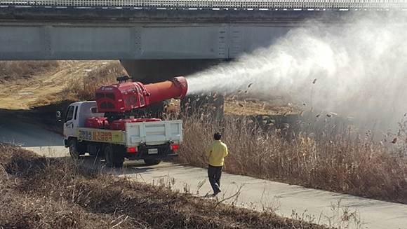 아울러 평택경찰서, 평택소방서, 해군2함대, 공군작적사령부 등 유관기관의 신속한 협조하에 오는 15일까지 매일 제독차량까지 동원하여 38국도 및 1번국도 등 구제역 발생 접경지역 도로를 중점적으로 소독하여 구제역 재발 방지에 힘을 더하고 있다.