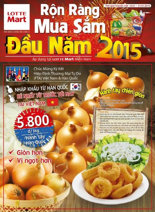 양파는 지난해 국내 공급 과잉과 소비 부진으로 가격이 폭락해 재고 소진이 시급한 상황이다. 롯데마트는 1차로 10톤 가량의 국산 양파를 베트남으로 수출, 오는 15일부터 베트남 10개 점포에서 판매한다고 밝혔다.