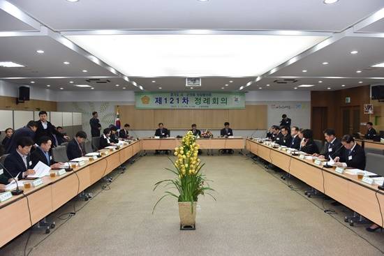 제121차 경기도 시·군 의회 의장협의회 정례회의가 고양시의회(의장 선재길)가 주관하고 경기도 시ㆍ군의회의장협의회가 주최한 가운데 1월 15일 꽃박람회 전시관 2층 세미나실에서 개최됐다.