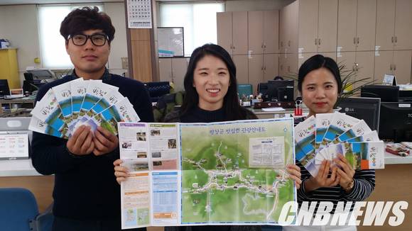 책자 형태로 제작된 안내도 앞면에는 테마별로 주요관광지, 향토자원이야기, 둘레길&등산길, 특산물, 음식점·숙박시설 현황, 할인쿠폰이 수록돼 있다. 또 뒷면에는 방림의 자랑, 문화자원, 스탬프 투어, 관광지·향토자원 위치를 나타내는 안내지도가 수록됐다.