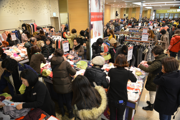 ▲세일 첫날인 지난 2일 롯데백화점 부산본점 지하 1층 행사장에는 겨울 시즌상품을 구입하려는 고객들로 크게 붐볐다. (사진제공=롯데백화점 부산본점)