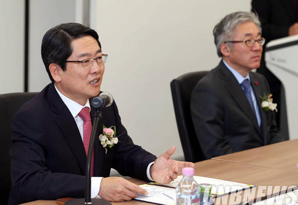 16일 서울 삼청로 국립현대미술관 서울관에서 예술꽃 씨앗(새싹)학교 활성화를 위한 업무협약 체결식이 열렸다. 이날 임영석 신한은행 부행장이 인사말을 하고 있다.