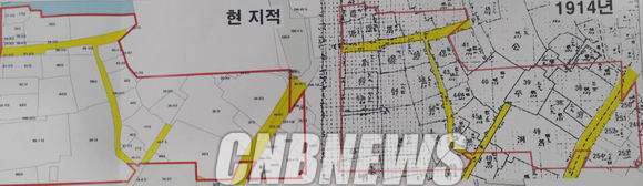 ▲종로구 공평동 개발지역의 1914년 지적도와 현재 지적도. 골목길 동선이 100년 전과 거의 일치한다. (제공=문화재청)