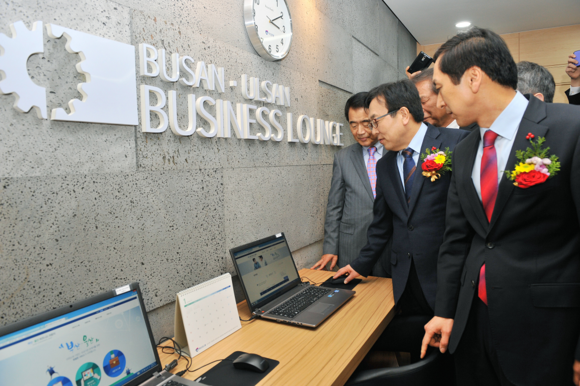 부산시는 16일 오후 3시 한국철도공사 서울역사내 4층 라운지에서 부산·울산 기업 임직원과 유관기관 관계자를 위한 비즈니스 지원시설인 ‘부산·울산 비즈니스라운지’ 개소식을 열었다고 밝혔다.