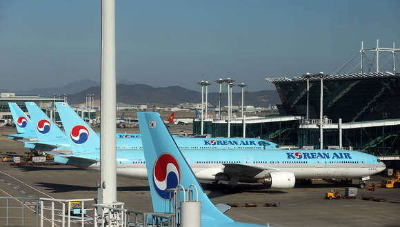 ▲영종도 인천국제공항 계류장에 대기중인 대한항공 항공기들(사진: 연합뉴스)