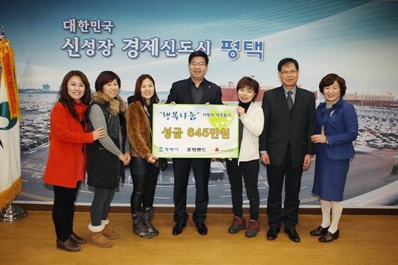 평택시에 거주하는 아줌마 예술인들이 평택시를 방문해 어려운 이웃을 위해 써 달라며 1200 만원을 기탁해 훈훈한 감동을 주고 있다.